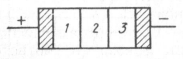 Рисунок 8 108. Почему для изоляции обмоточных проводов трансформаторов и электродвигателей используют термореактивные, а не термопластичные лаки? 109. Как и почему изменится напряжение поверхностного пробоя, если керамический изолятор поместить в трансформаторное масло? 110. Каким образом происходит кристаллизация стекол с однородной мелкозернистой структурой по всему объему? 111. Чем отличается строение кристаллического кварца и силикатных стекол? Почему стеклообразование вещества является термодинамически неустойчивым? Какие процессы происходят в стекломассе при медленном охлаждении? 112. Предполагая, что в диэлектрике доминируют потери на электропроводность, изобразите график зависимости напряжения теплового пробоя от температуры окружающей среды. 113. Чем объясняется высокая стойкость кварцевого стекла к тепловым импульсам? 114. Почему ситаллы и силикатные стекла одинакового химического состава обладают разными электрическими, механическими и теплофизическими свойствами? 115. Для определения природы носителей заряда в ионном диэлектрике был использован метод Тубандта. При этом были изготовлены три таблетки исследуемого диэлектрика, на две из которых с одной стороны были нанесены электроды. Каждая таблетка была тщательно взвешена, затем все таблетки были сложены, как показано на рисунке 9, и через них в течение длительного времени пропускали постоянный ток.