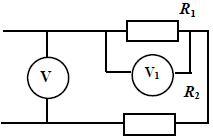 Рис.8.1. Схема измерения напряжения 10. Определить абсолютную ΔR и относительную погрешности косвенных измерений сопротивления резистора (рис.8.2), если показания вольтметра 10 В, миллиамперметра 100 мА. Предел измерения вольтметра 15 В, класс точности 1,0; предел измерения миллиамперметра 150 мА, класс точности 1,5.