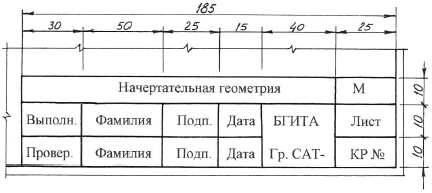 Все чертежи контрольной работы № 1 сопровождаются основной надписью по форме, приведенной на рисунке 7.