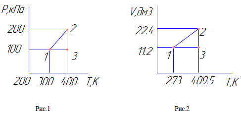 4. На РТ диаграмме изображен замкнутый процесс, который совершает некоторая масса кислорода (рис.1). Известно, что максимальный объем, который занимал газ в этом процессе, Vmax=16,4 дм3. Определить массу газа и его объем в точке 1. Значения T1, Т2, P1 и Р2 указаны на рисунке. 5. На VТ-диаграмме изображен замкнутый процесс, который совершает некоторая масса азота (рис.2). Известно, что минимальное давление газа в этом процессе Pmin=3*105 Па. Определить массу газа и его давление в точке 1. Значения T1, T2, V1 и V2 указаны на рисунке. 6. Некоторая масса газа занимает объем V1 при давлении P1 и температуре T1. Затем газ при постоянном объеме нагревают до температуры T2= 2T1; после этого происходит расширение газа при постоянном давлении до объема V2= 4V1. Из получившегося состояния газ возвращают в начальное (Р1,V1,T1), причем так, что во время этого процесса PVn = const. Определить показатель степени п. 7. 4 кг воздуха с начальным давлением р1= 1,2 МПа и начальной температурой t1= -100С расширяется адиабатно до конечного давления р2= 0,2 МПа. Определить объем и температуру воздуха в конце сжатия, работу сжатия и изменение внутренней энергии, если показатель адиабаты k= 1,4. 8. 1 кг воздуха с начальным давлением р1= 0,2 МПа и начальной температурой t1= 600С сжимается политропно до конечной температуры t2= 5200С. Определить работу сжатия, изменение внутренней энергии и количество отведенной теплоты от воздуха, если показатель политропы n= 1,35. 9. В одноступенчатом компрессоре политропно сжимается воздух до конечного давления р2 = 0,6 МПа. Начальная температура воздуха t1= 170С и давление р1= 0,2 МПа. Определить конечную температуру воздуха и работу, затраченному на сжатие 1 кг воздуха, если показатель политропы n= 1,25. 10. В одноступенчатом компрессоре сжимается адиабатно двуокись углерода до р2= 0,5 МПа. Начальная температура двуокиси углерода t1= -50С и давление р1= 0,1 МПа. Определить работу, затраченному на сжатие 1 кг двуокиси углерода и конечную температуру двуокиси углерода, если показатель адиабаты k= 1,28. 11. В процессе политропного расширения воздуху сообщается 83,7 кДж тепла. Найти изменение внутренней энергии воздуха и произведенную работу, если объем воздуха увеличился в 10 раз, а давление его уменьшилось в 8 раз. 12. 10 кг воздуха при давлении р1=0,12 МПа и температуре t1=300C сжимается изотермически, при этом в результате сжатия объем уменьшается в 2,5 раза. Определить начальные и конечные параметры, количество теплоты, работу и изменение внутренней энергии. 13. При изотермическом сжатии 2,1 м3 азота, взятого при р1= 0,1 МПа, от газа отводится 335 кДж теплоты. Найти конечные объем и давление и затраченную работу. 14. Перегретый водяной пар с начальным давлением р1= 0,1 МПа и начальной температурой t1= 2300С сжимается изотермически до степени сухости х2= 0,85. Определить параметры пара в начальном и конечном состоянии, количество отведенной теплоты от пара, изменение внутренней энергии и работу сжатия. Изобразить тепловой процесс в is-диаграмме. 15. Водяной пар с начальным давлением р1= 5 МПа и начальной температурой t1= 3500С расширяется адиабатно до давления р2= 0,01 МПа. Определить параметры пара в начальном и конечном состоянии, количество отведенной теплоты от пара, изменение внутренней энергии и работу расширения. Изобразить тепловой процесс в is-диаграмме. 16. В пароперегреватель котельного агрегата поступает влажный пар в количестве 18 кг/с. Опре