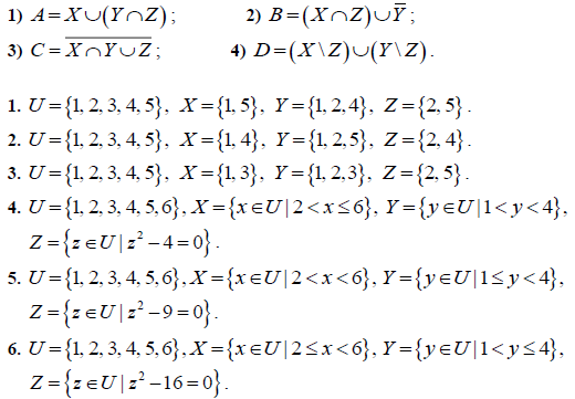 Задания для контрольной работы. 1-10. Даны множества U , X ,Y, Z ⊂ U . Описать перечислением всех элементов множества:
